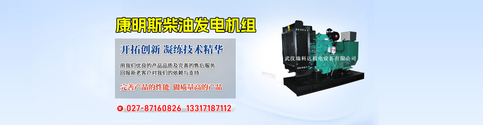 武漢瑞科達(dá)機(jī)電設(shè)備有限公司,是2005年經(jīng)武漢市工商局批準(zhǔn)注冊(cè)成立的專(zhuān)業(yè)機(jī)電電源產(chǎn)品公司,坐落于有九省通衢之稱(chēng)的武漢。公司致力于向客戶(hù)提供專(zhuān)業(yè)的電力應(yīng)用解決方案與技術(shù)服務(wù),靠著合格的產(chǎn)品質(zhì)量保證,完善的售后服務(wù),使公司的知名度迅速提高,業(yè)績(jī)遍及全國(guó)。現(xiàn)已成為國(guó)內(nèi)外多家渠道商: "東風(fēng)康明斯、重慶康明斯瑞典沃爾沃、珀金斯.勞斯萊斯、韓國(guó)大宇、無(wú)錫萬(wàn)迪動(dòng)力......