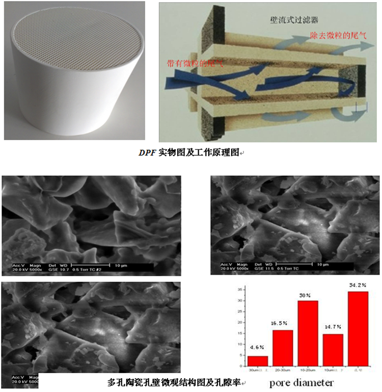 顆粒捕集器濾芯(DPF)為凈化裝置的核心技術(shù), DPF采用碳化硅陶瓷,并經(jīng)特殊工藝加工成壁流式多孔陶瓷,該結(jié)構(gòu)對(duì)捕捉柴油應(yīng)急發(fā)電機(jī)組尾氣排放的顆粒物效率極高。DPF的每一個(gè)通道在一端開口,在另一端封口,氣體通道為孔壁在的微孔,柴油發(fā)電機(jī)的排氣從入口進(jìn)入過濾體,然后由入口通道的壁流面流出, 顆粒物被攔截在孔內(nèi), 過濾后的氣體排出。